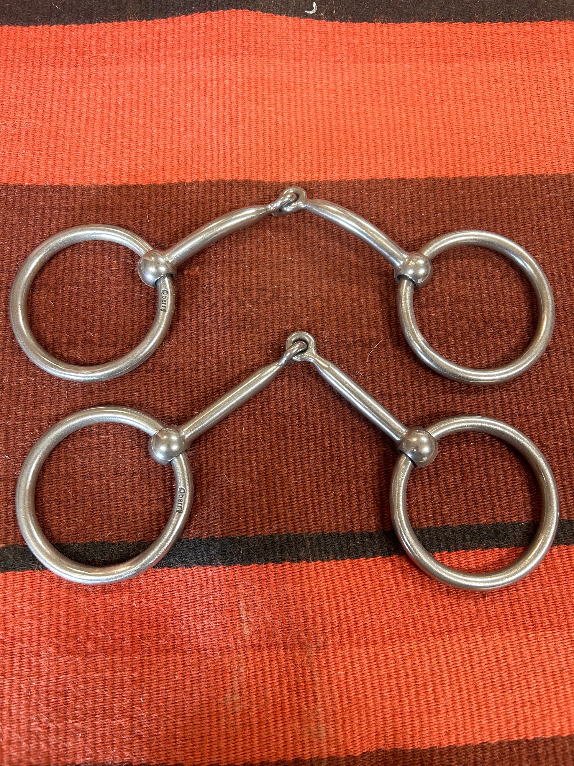 Experience quality with these handmade QBerry Snaffle Bits. The precise 5\ 1/4" wide, 3/8" diameter mouthpiece is paired with 2\ 1/2" loose rings. Expertly crafted and show legal, this bit delivers reliable performance and comfort for your horse. These are probably the nicest snaffles we've used.